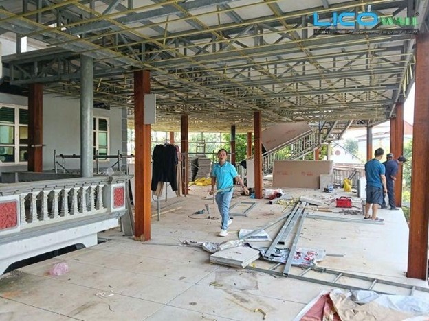 Nhà lắp ghép từ tấm LICO WALL kết hợp khung thép mạ kẽm là giải pháp hiện đại cho các dự án cần tiến độ nhanh như homestay, văn phòng mini hay khu nhà công nhân. Công trình có thể tháo lắp linh hoạt, di chuyển dễ dàng mà vẫn đảm bảo độ bền chắc.